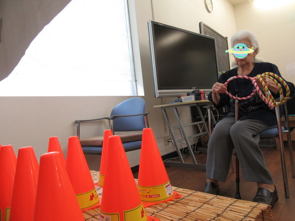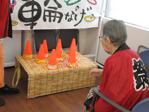 ご利用者様も法被を着て輪投げに挑戦(^^♪ファイトー!!! -