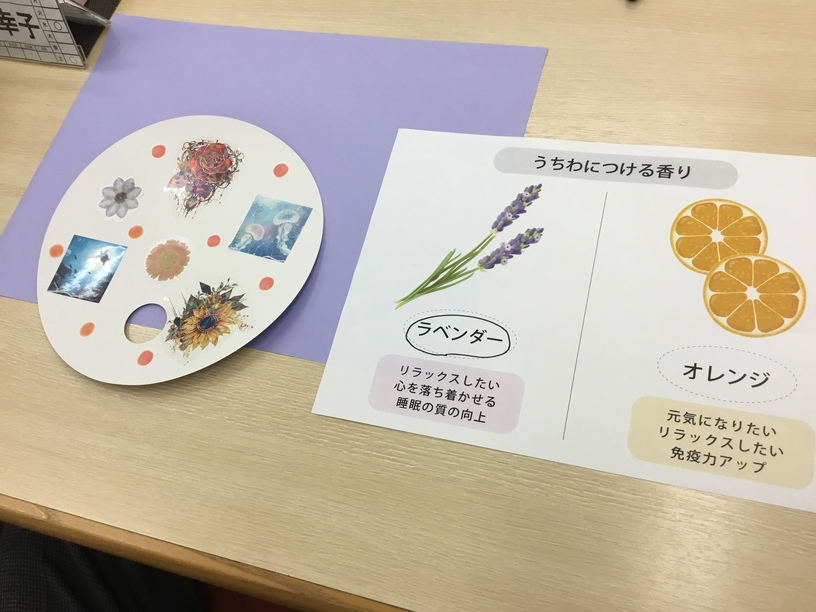 香りのうちわ作りと手のマッサージ