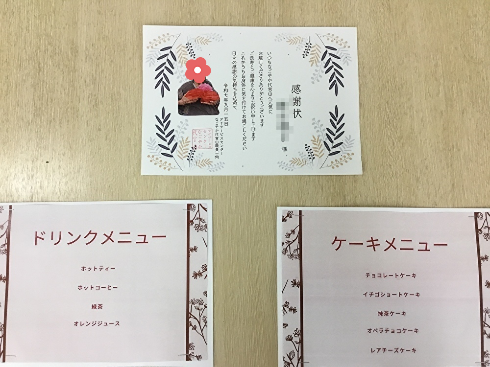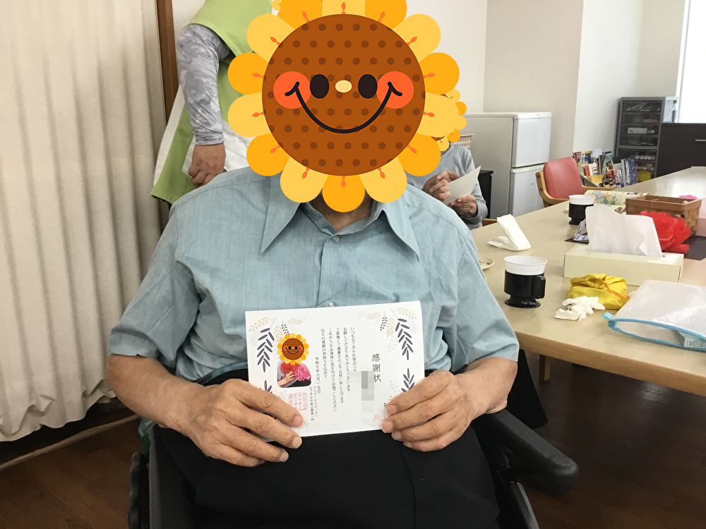 そして職員から歌のプレゼントをおこない、写真入りのメッセージカードを贈りました。