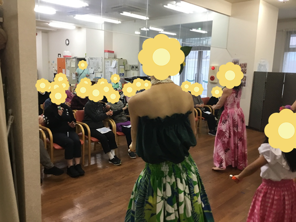 さて、なごやか代官山ではボランティアの方たちが来てくださりフラダンスのショーを開催しました