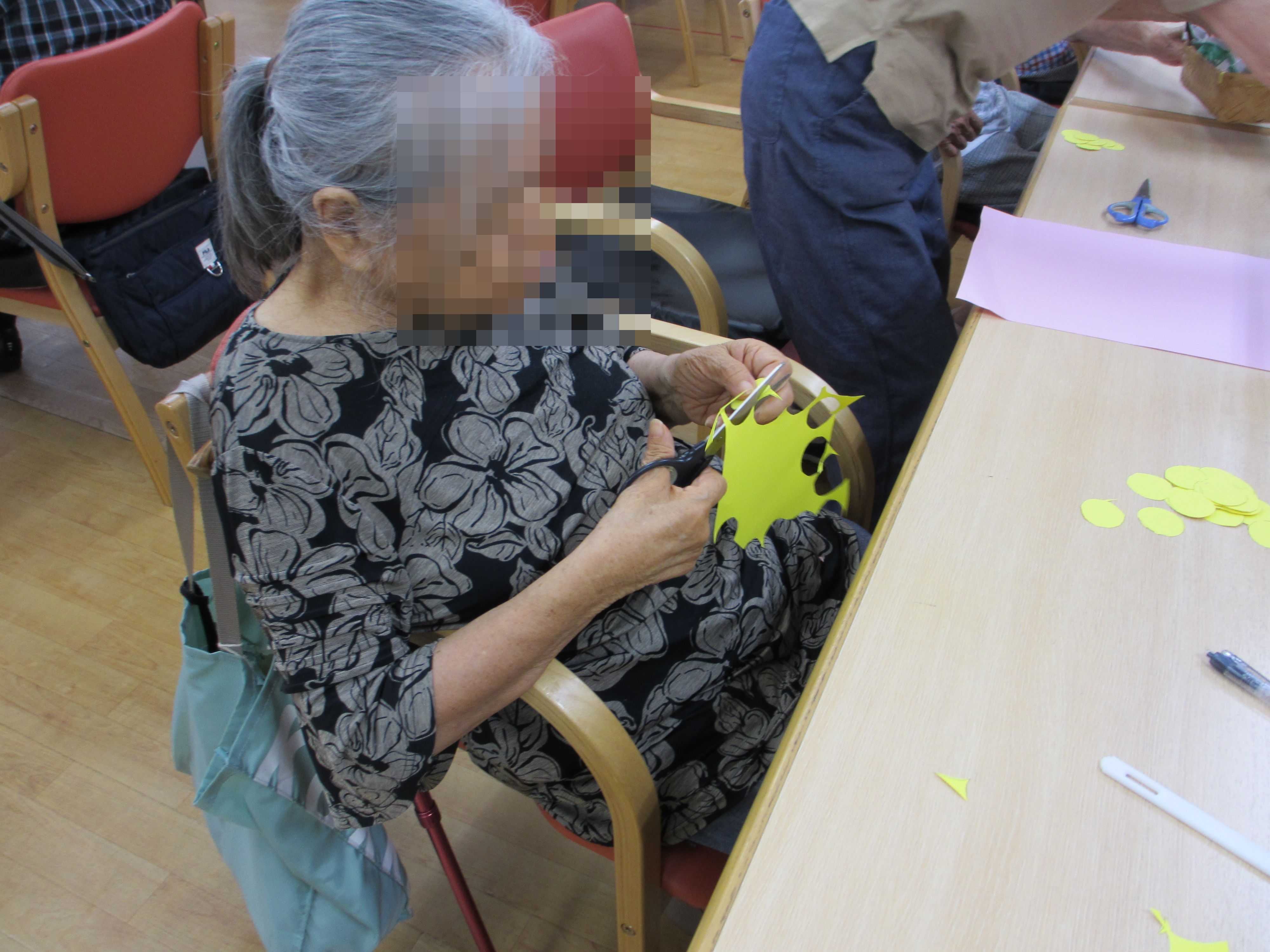 本日は秋に向けて色画用紙を使用して、コスモスの工作に取り組まれていました!画用紙をハサミで切られたり、のりで貼られたりと細かい作業でしたが集中して取り組まれていました(^0_0^)