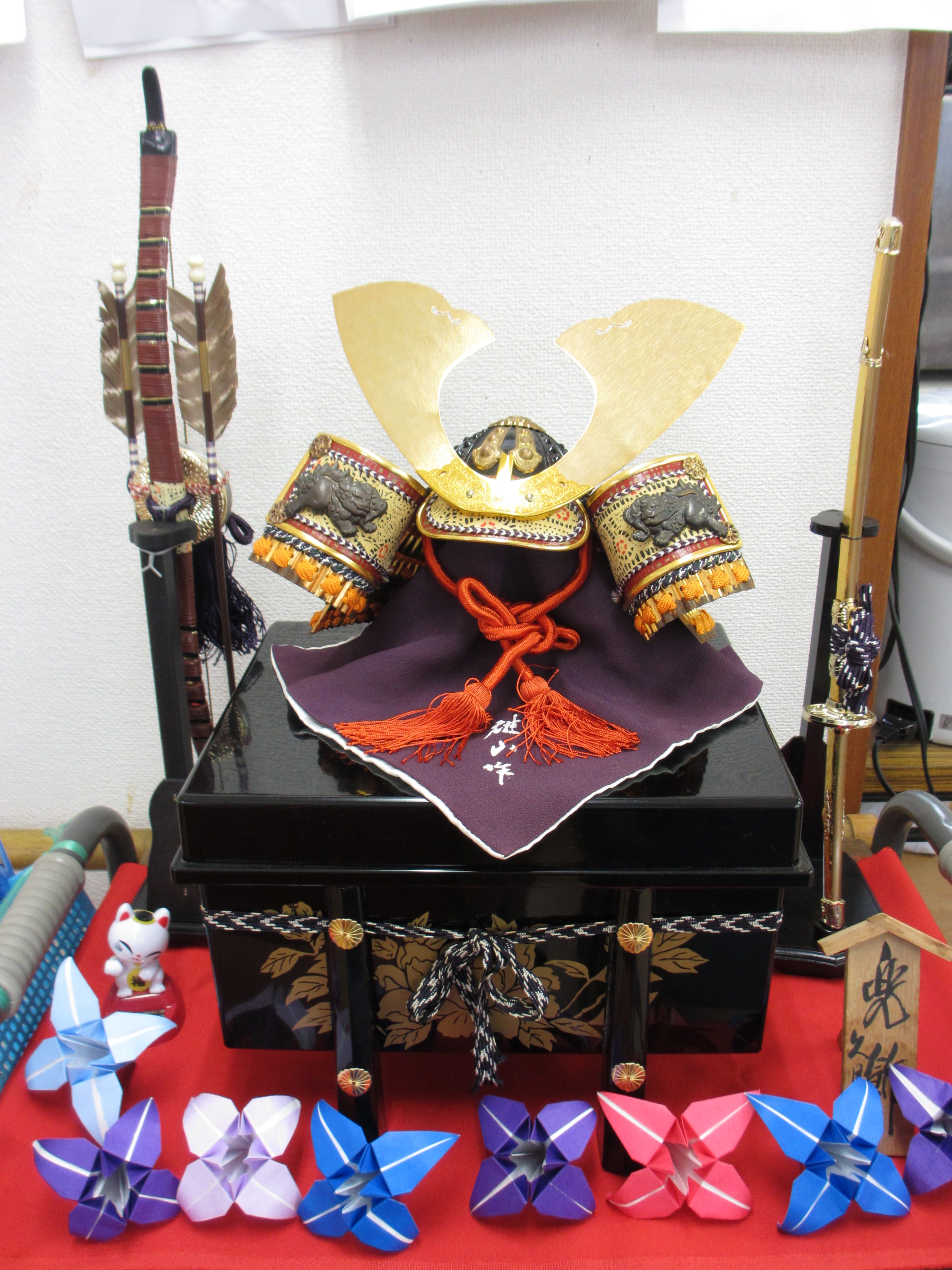端午の節句に向けて、兜と飾りました。菖蒲の花もご利用者様と作成しました。