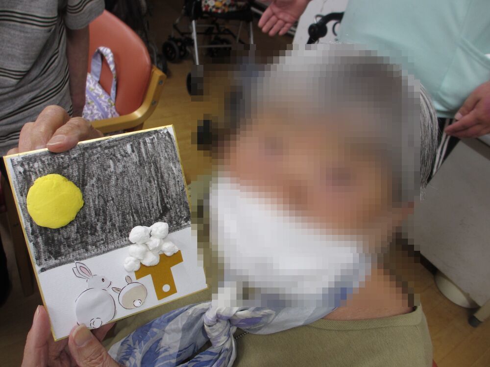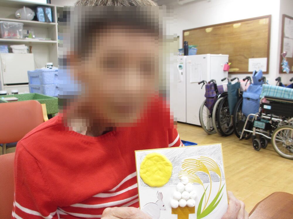 創作レクとしまして十五夜のお飾りに取り組みました。お団子を丸めたり、色を塗ったり、配置を決めたり・・・と世界で一つだけの作品が出来上がりました♪