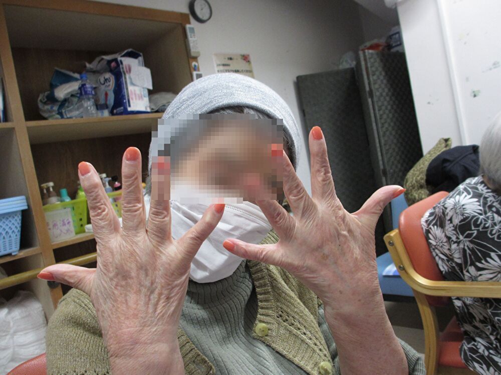 女性のご利用者様がとても楽しみにしている美容レクですが、今月はネイルを行いました♪施術中も楽しい会話であっという間に素敵なネイルの完成です(^▽^)
