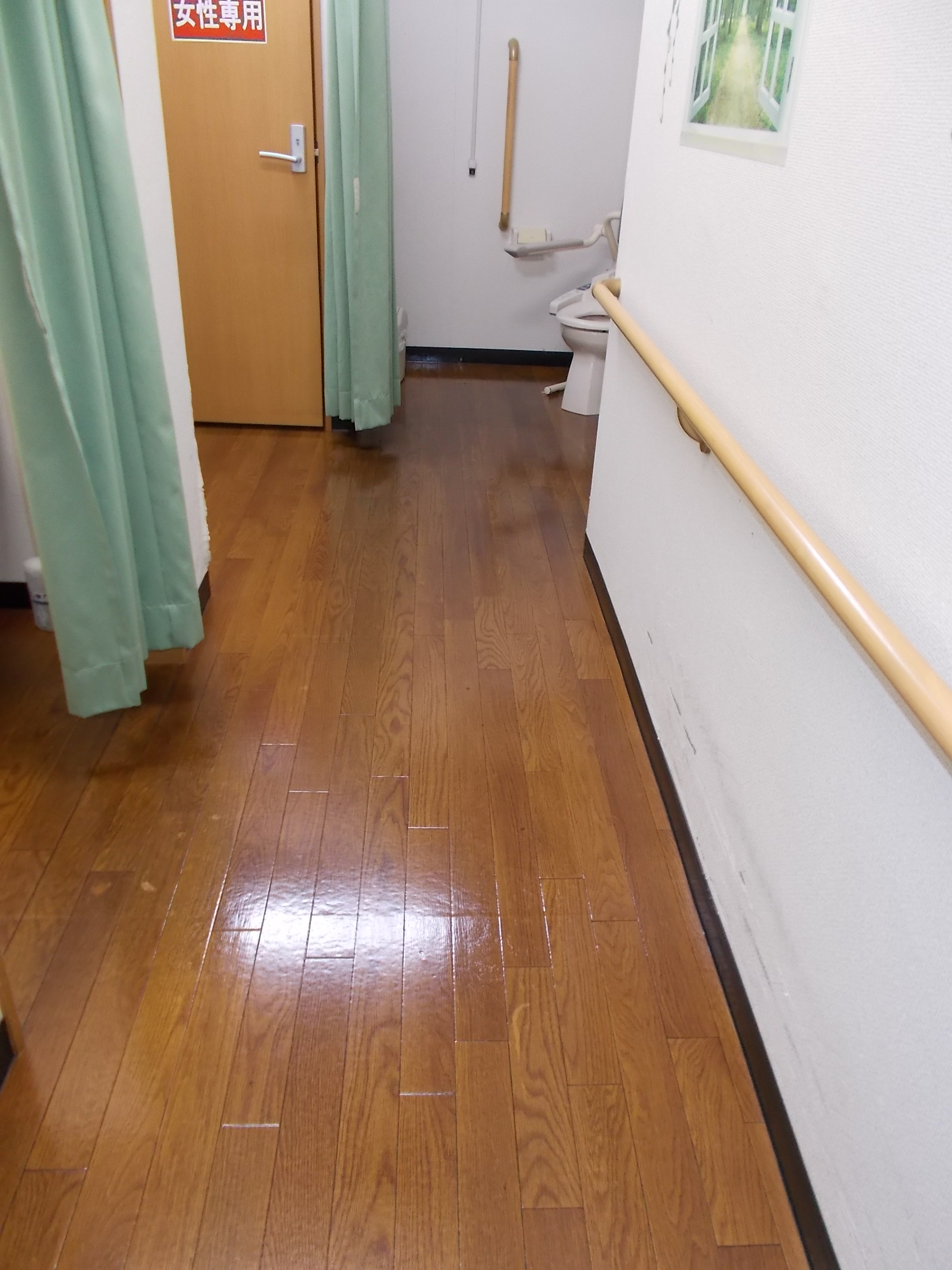 土曜日の夕方皆さんがお帰りになった後、鴻巣施設長自らワックス職人となり床をワックスがけしました!ワックスでピカピカ光って見えます!