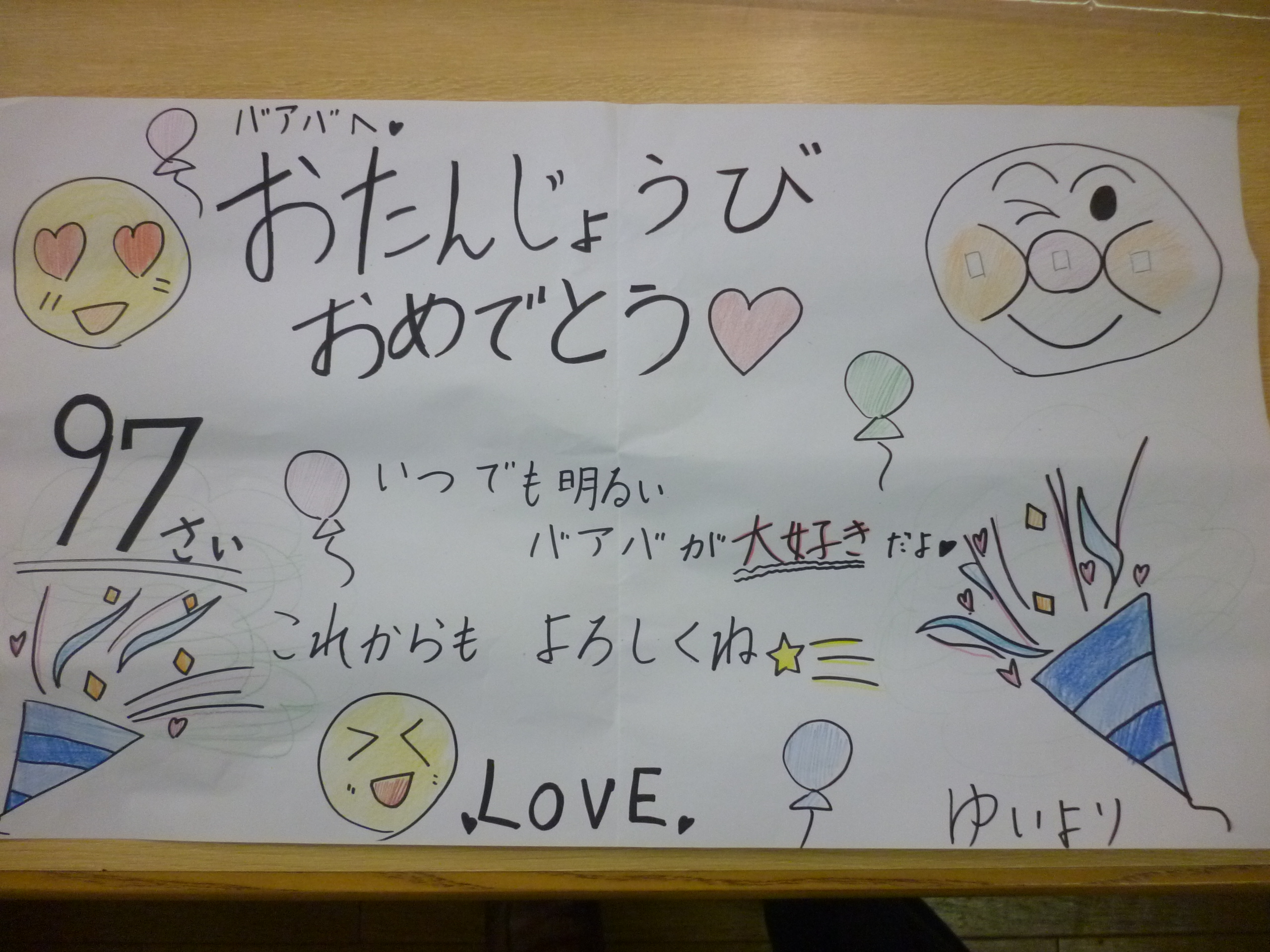 なごやか保土ヶ谷で2番目にご長寿の方が今年も無事にお誕生日を迎えられました。今朝はご本人が作成された貼り絵を持ってきて下さいました。