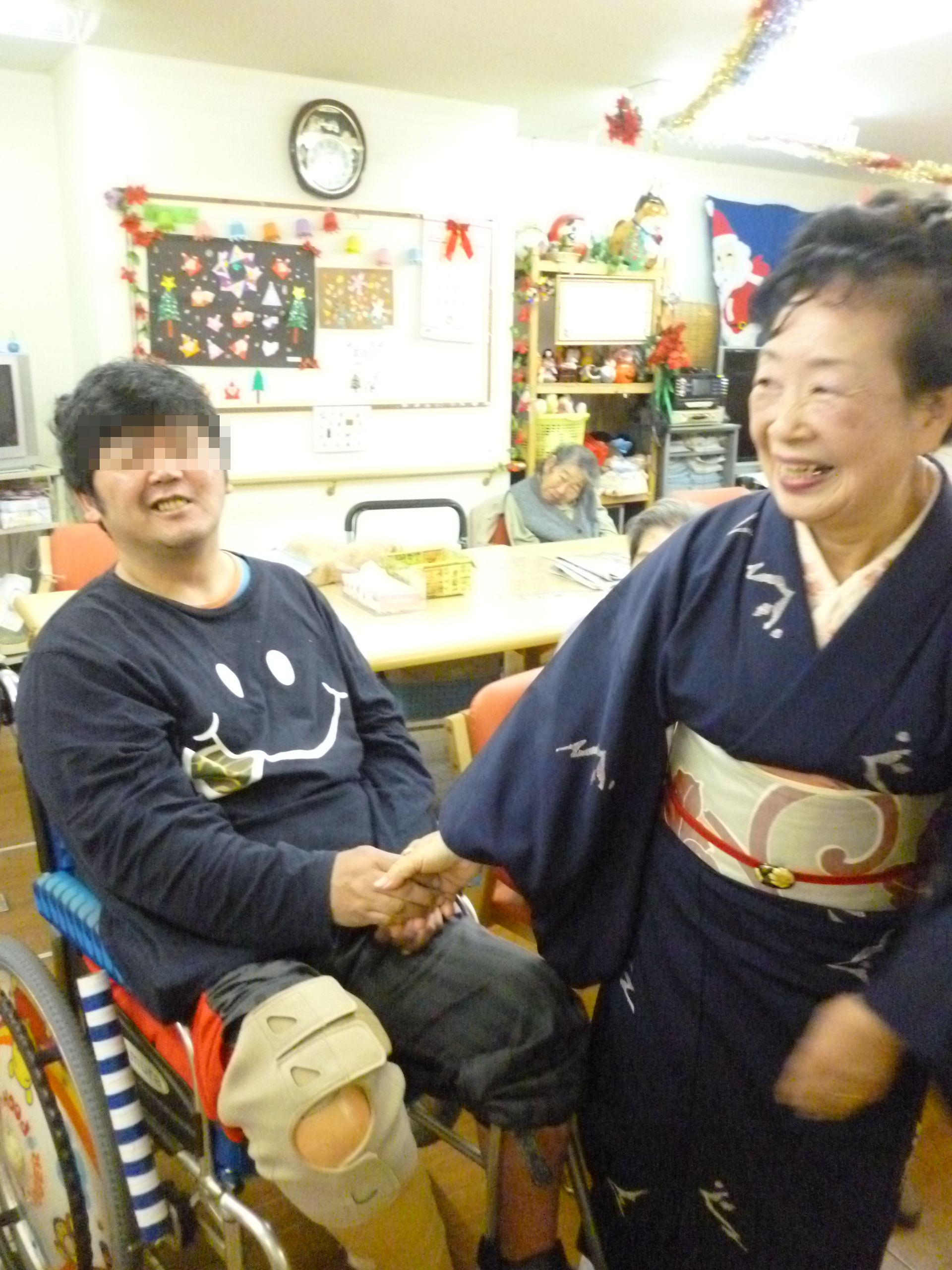 撮影の脇川介護士にピースすると後でカメラ目線で真面目に踊ってないと怒られました。