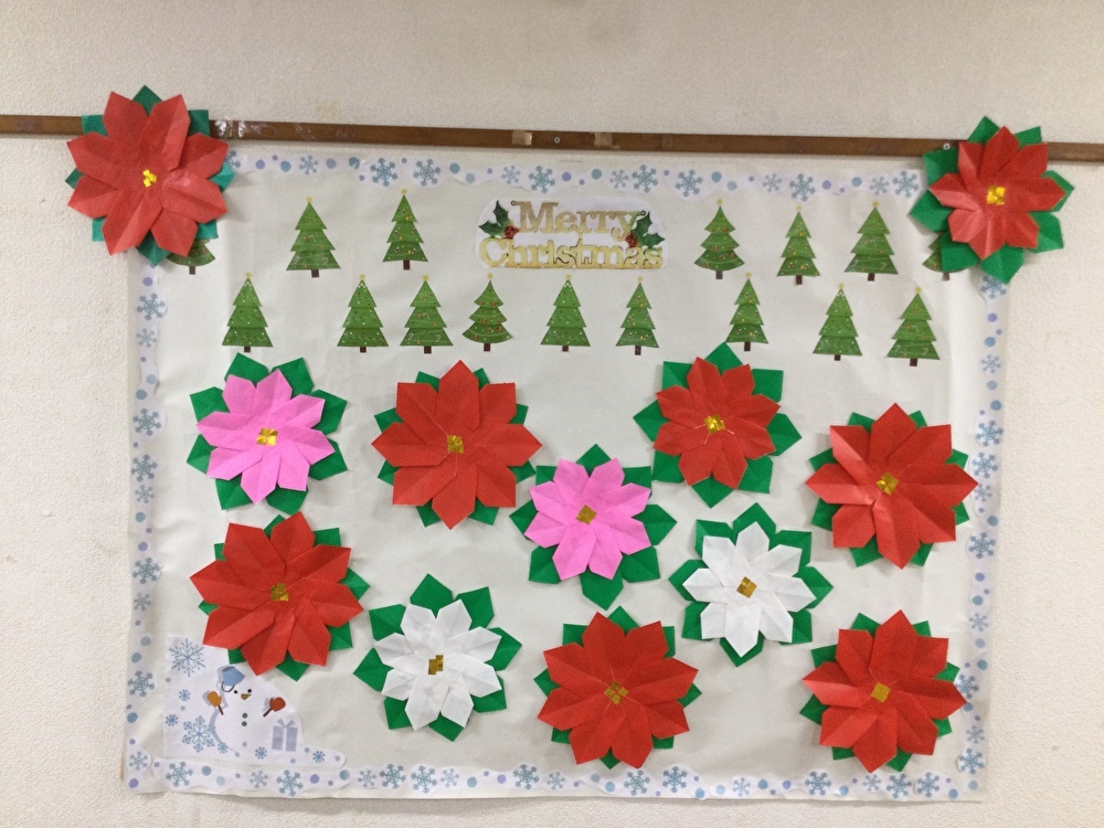 12月になりまして、段々と寒い時期になりました。これからクリスマスに近づいてきたので空いている時間を利用しながら、ポインセチアを利用者様と作りました。