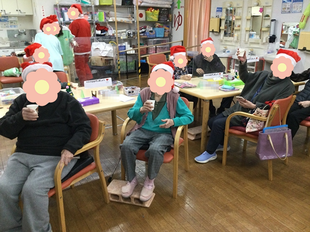 12/25になごやか保土ヶ谷ではクリスマス会を開催をしました。サンタとトナカイが登場して皆さんでクリスマスソングを歌って乾杯をしました。