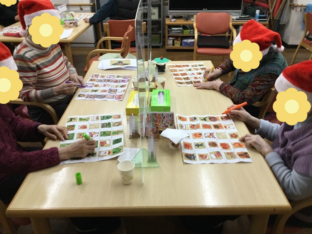 今回はいつものビンゴと違ってクリスマスの絵柄を揃えるビンゴ大会を行いとても盛り上がりました。