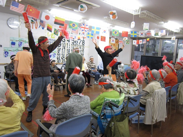 応援グッズを配ってから、リーダーが競技内容を説明します。
