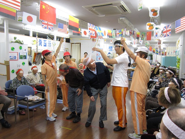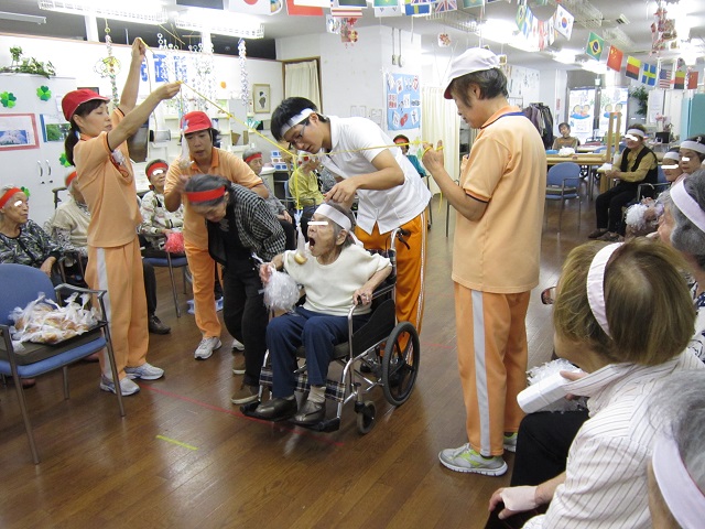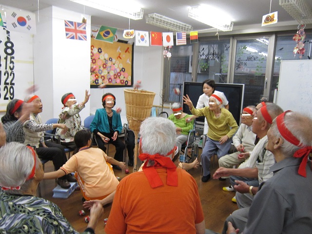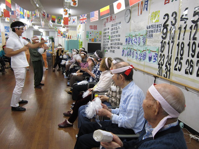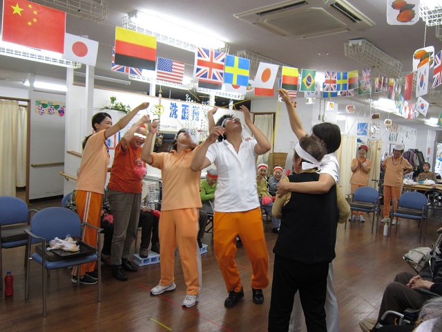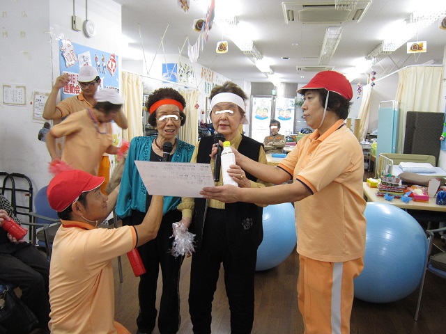 体育の日に合わせて、運動会を開催しました。赤と白に分かれて対抗戦です。