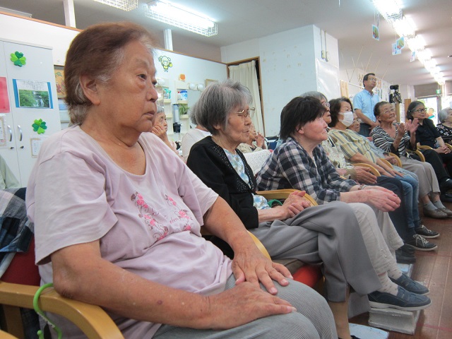 今日は、音楽ボランティアの方が来てくださいました〜!「夢コンパス」の皆さんは、全員が音大を卒業されていらっしゃいます。ステキな歌声と素晴らしいセットに圧倒され、とても楽しい時間を過ごしました〜!こちらが夏らしい浴衣姿で来てくださった「夢コンパス」の皆さんです!