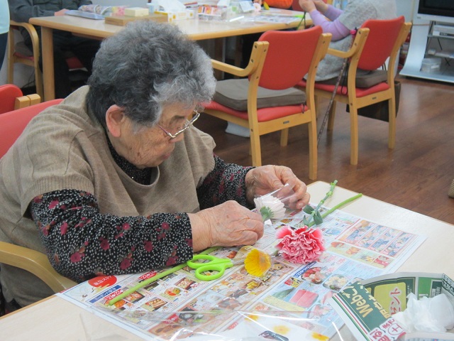 レクの時間に、フラワーアレンジメントを行いました!その際のご様子です!