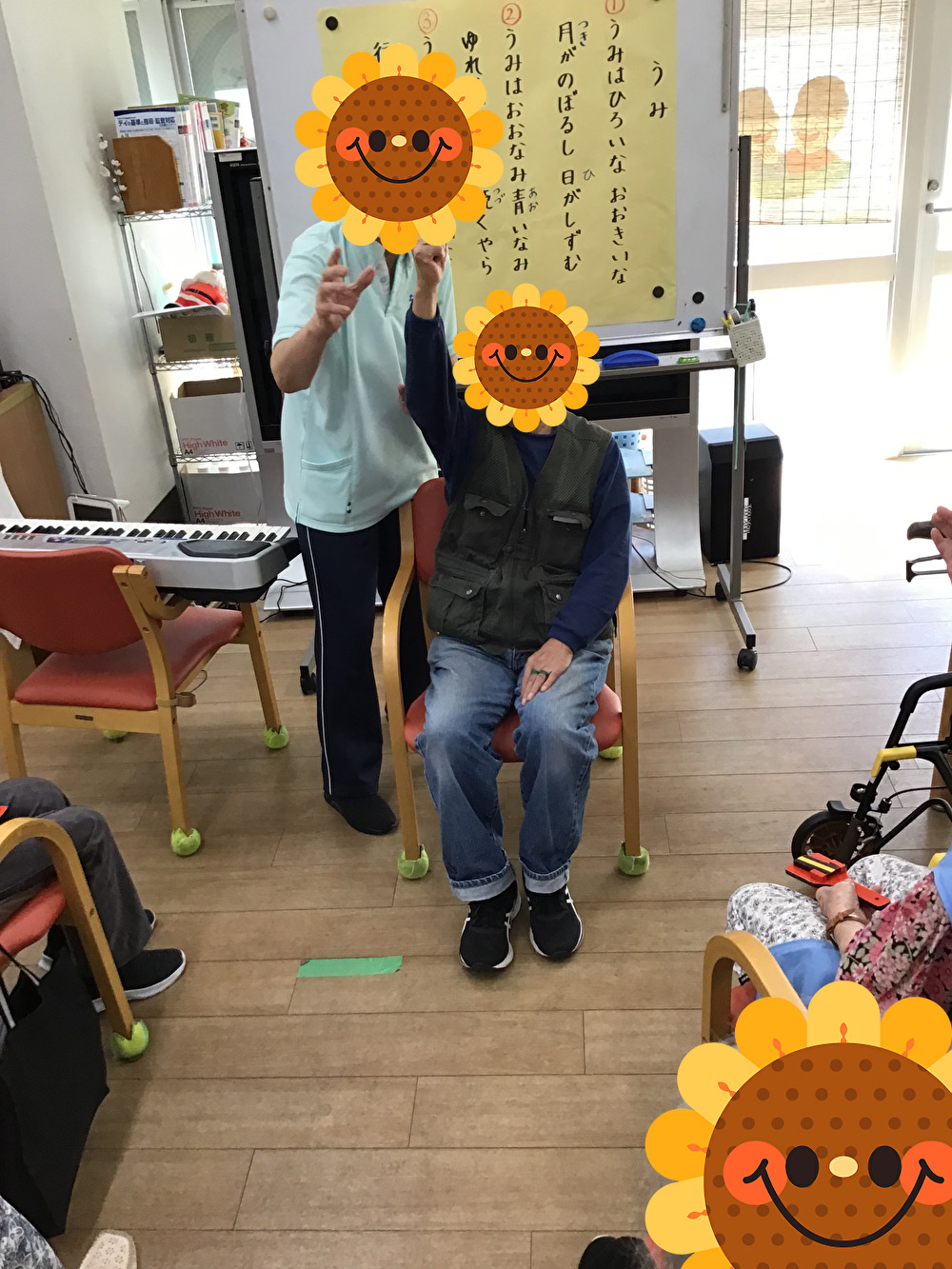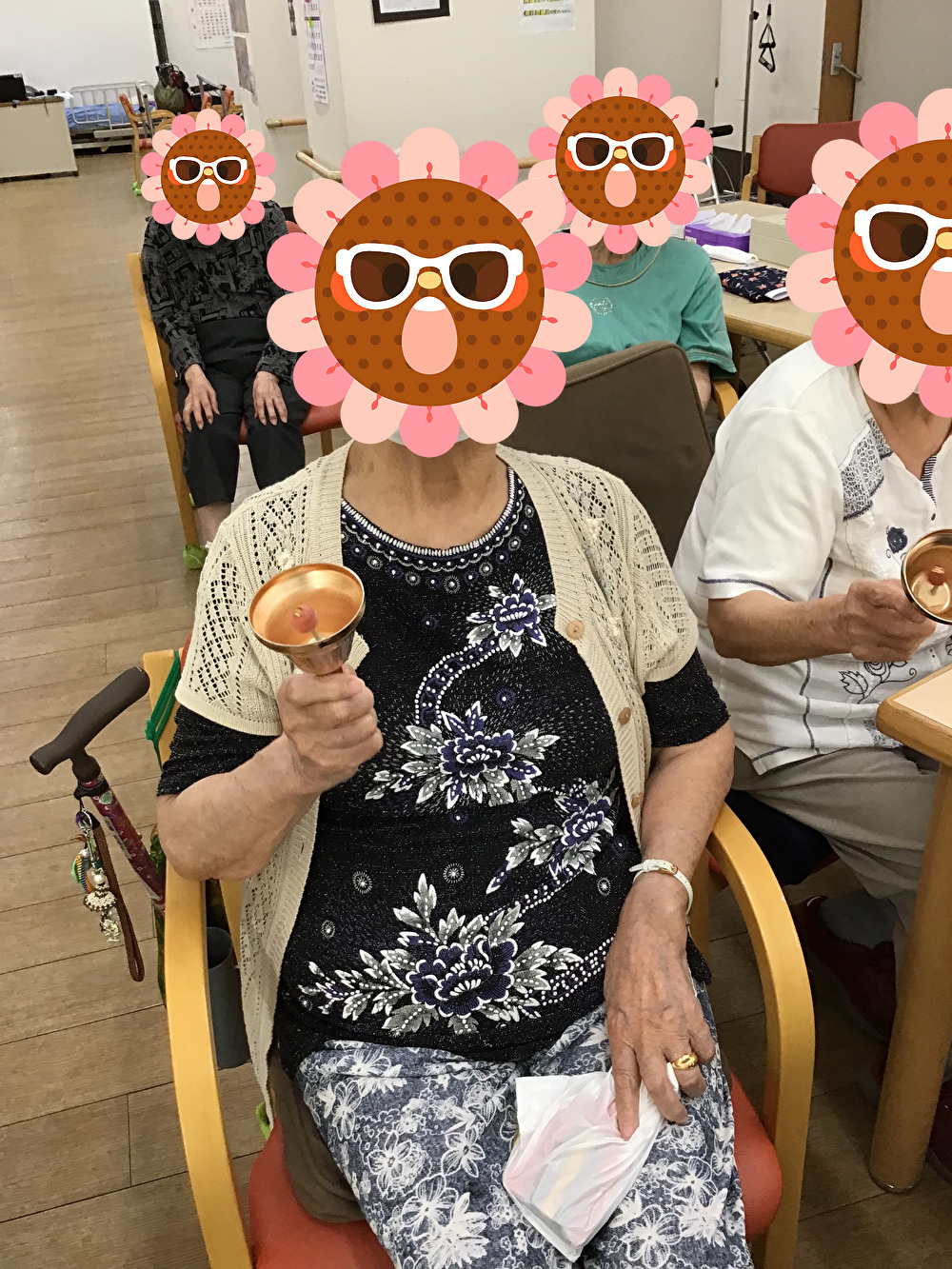 8月23日(土)に今月のイベントとしてオレンジ湯と音楽会を行いました。スタッフの演奏とお客様の指揮、またみなさんにハンドベルや鳴子を持っていただき参加していただいています♪