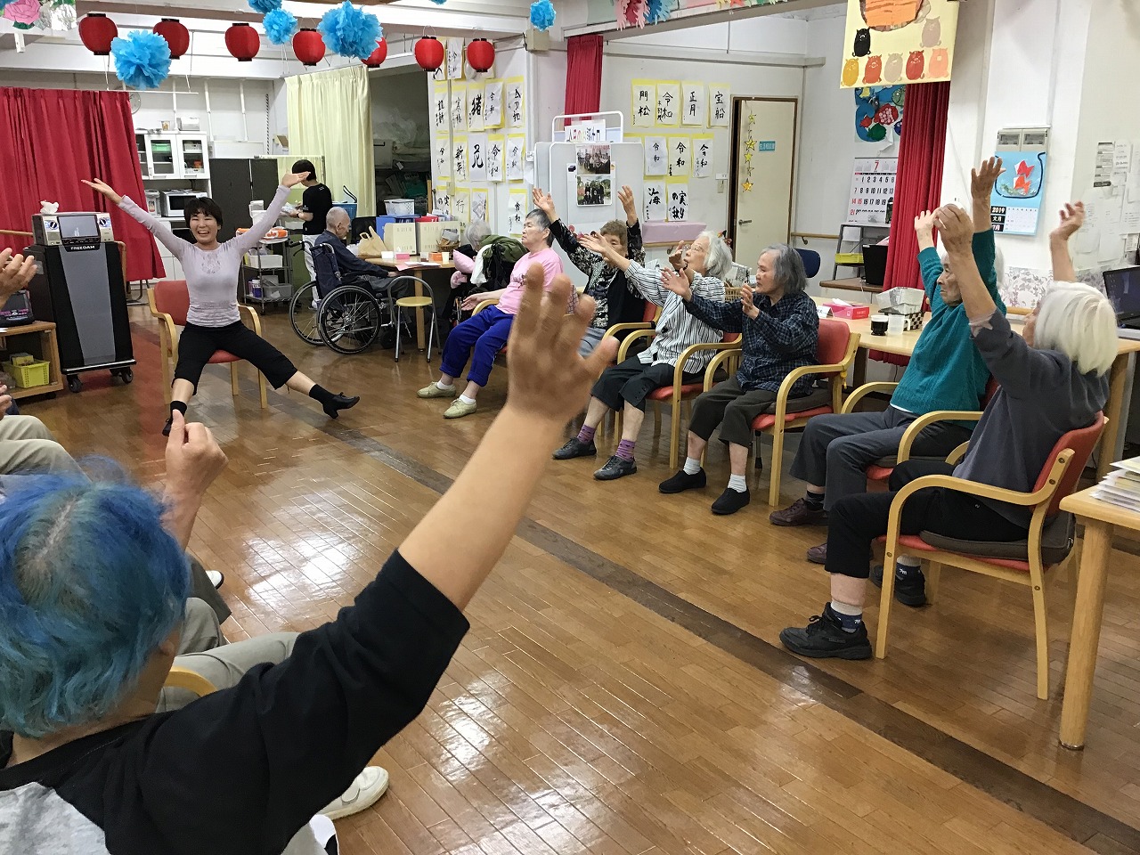 かんたん社交ダンスの先生が来てくれました。普段あまり体操しない男性陣が、なぜか。。。なぜか。。。一生懸命に体を動かしていました。