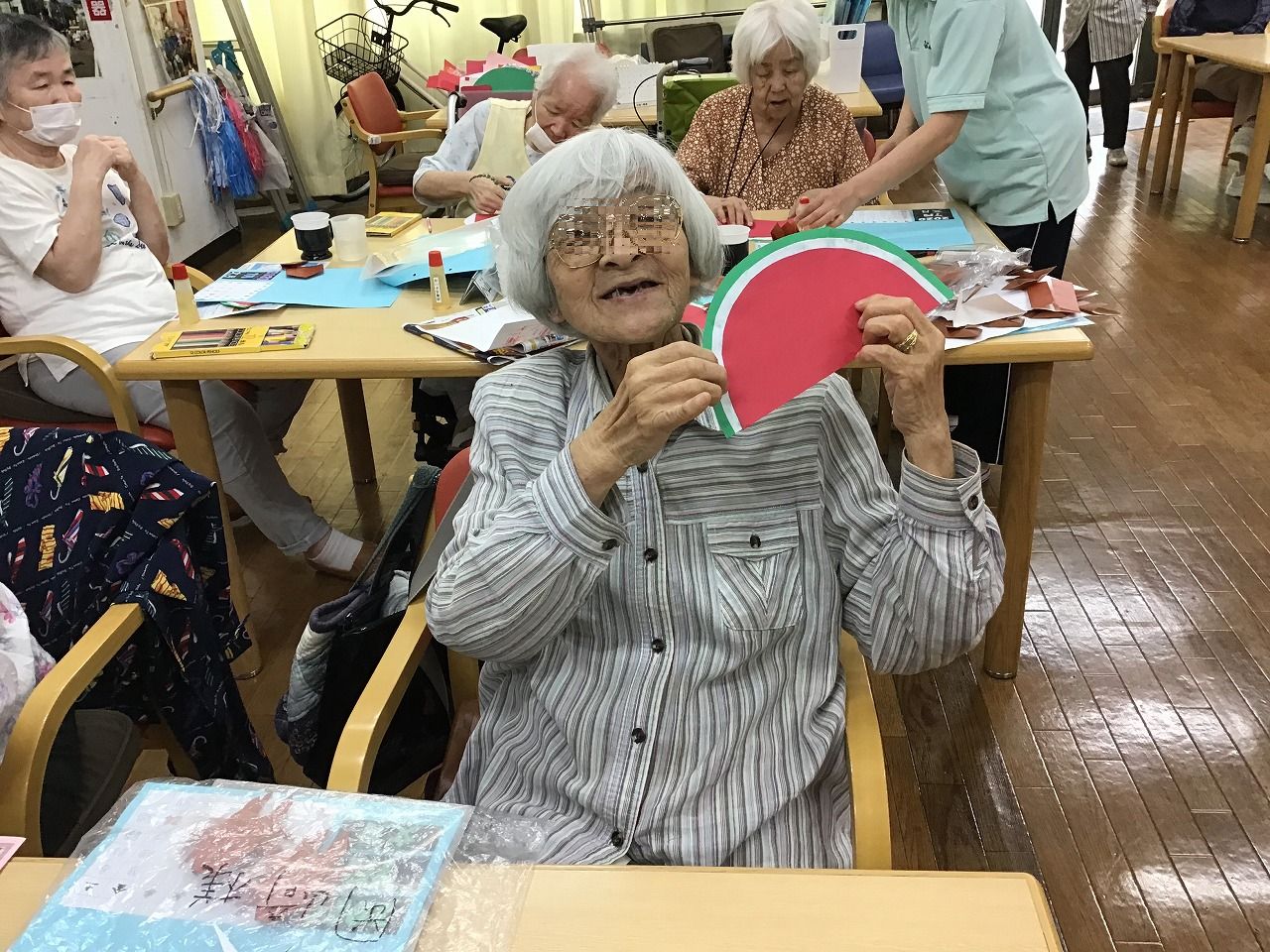 大切りのスイカをクワガタムシがつっつく姿はもう夏がそこまで来てますね^^来月7月のカレンダーづくりを皆さん笑顔で楽しく苦戦しながら・・・「次はどうすればいいの?」「先生!こっちきて教えて!」