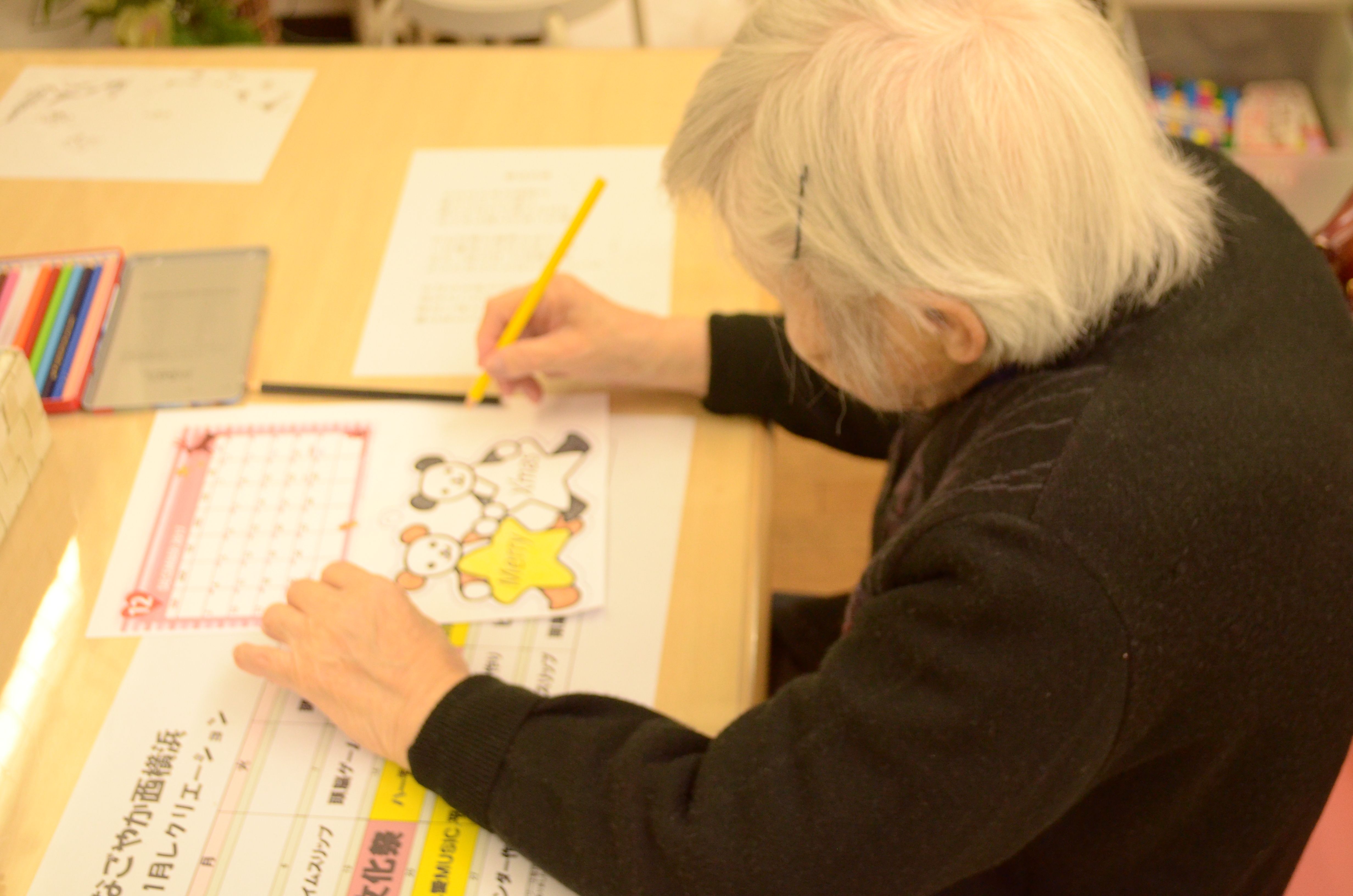 今回、カレンダーのお題は、「クリスマス」です。自分だけの世界に一つのオリジナルカレンダーを作成しました。皆さま完成した作品を見つめながら、満面の笑顔でした。かわいい!!クマ