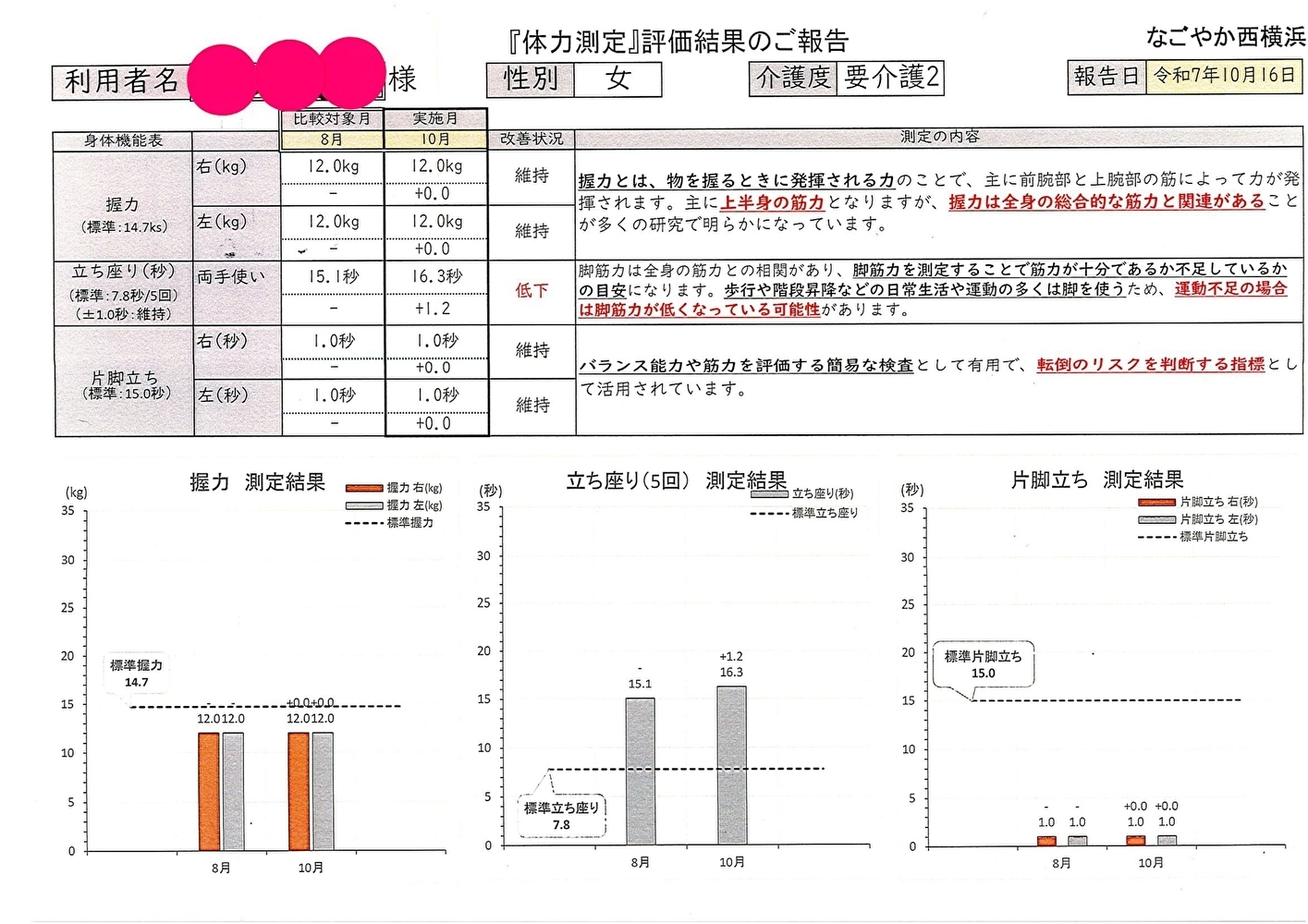 今週は、体力測定が三ヵ月経ちましたので、結果をお渡しします。