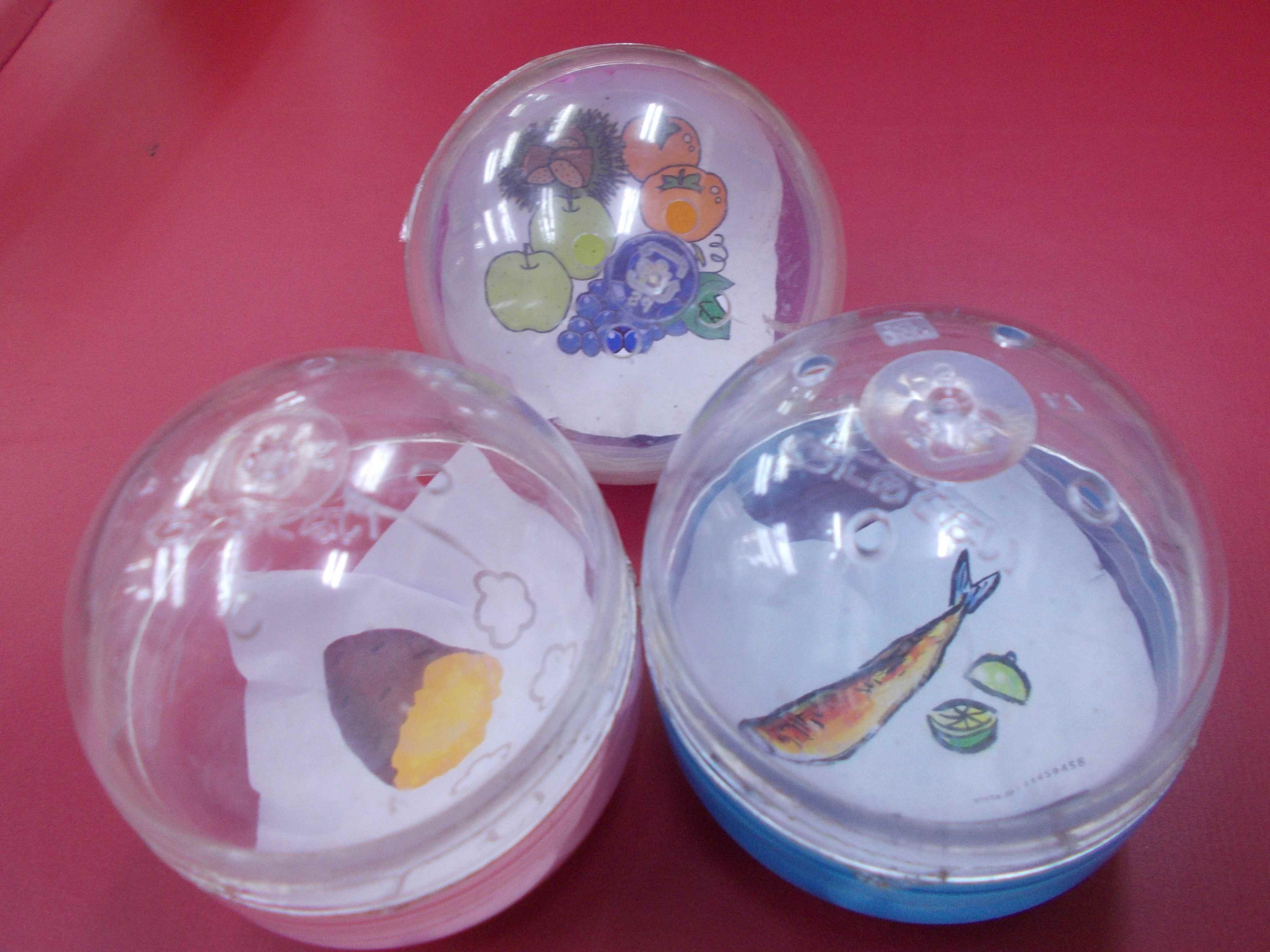 カプセルに入った秋の味覚「栗」「お芋」「松茸」などを探すゲームです!