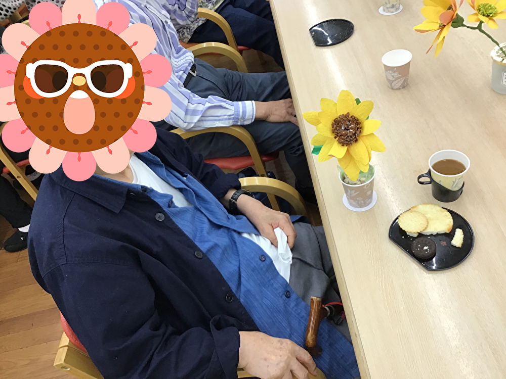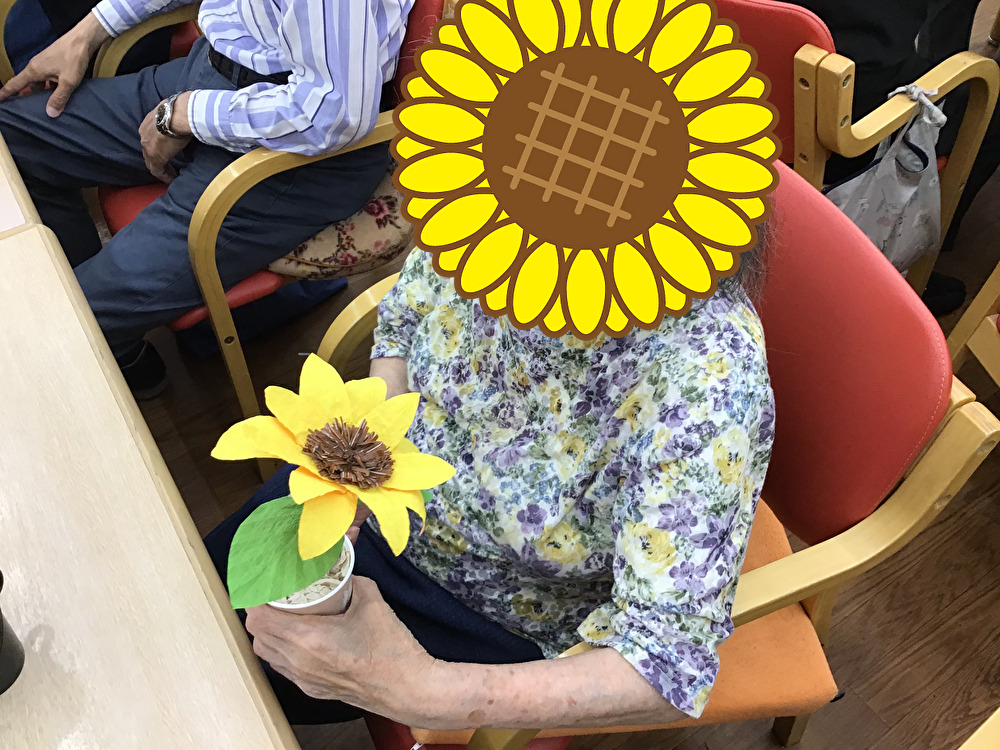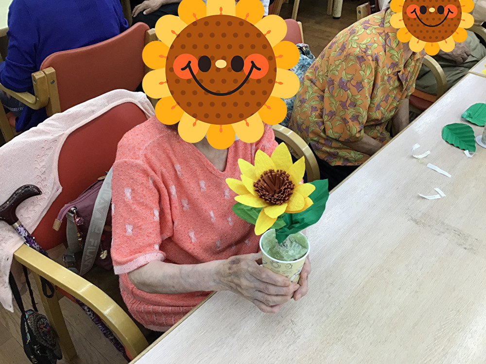 7月の創作活動としてひまわりを作りました!指の運動をかねて和紙と折り紙を切ったり貼ったりして、皆さん見事に咲かせました!