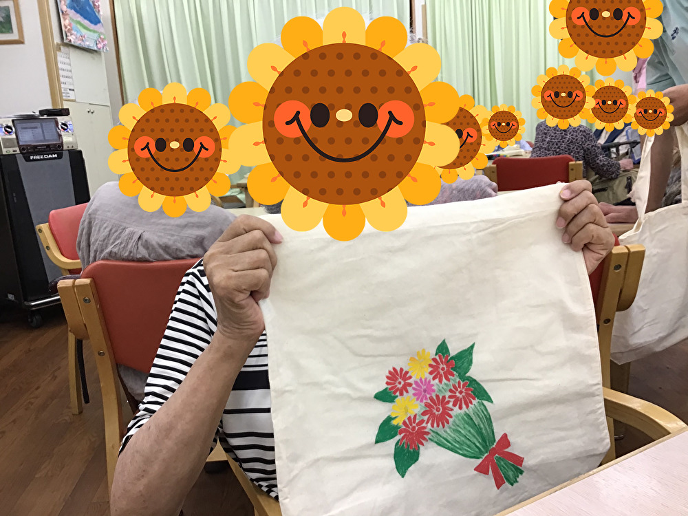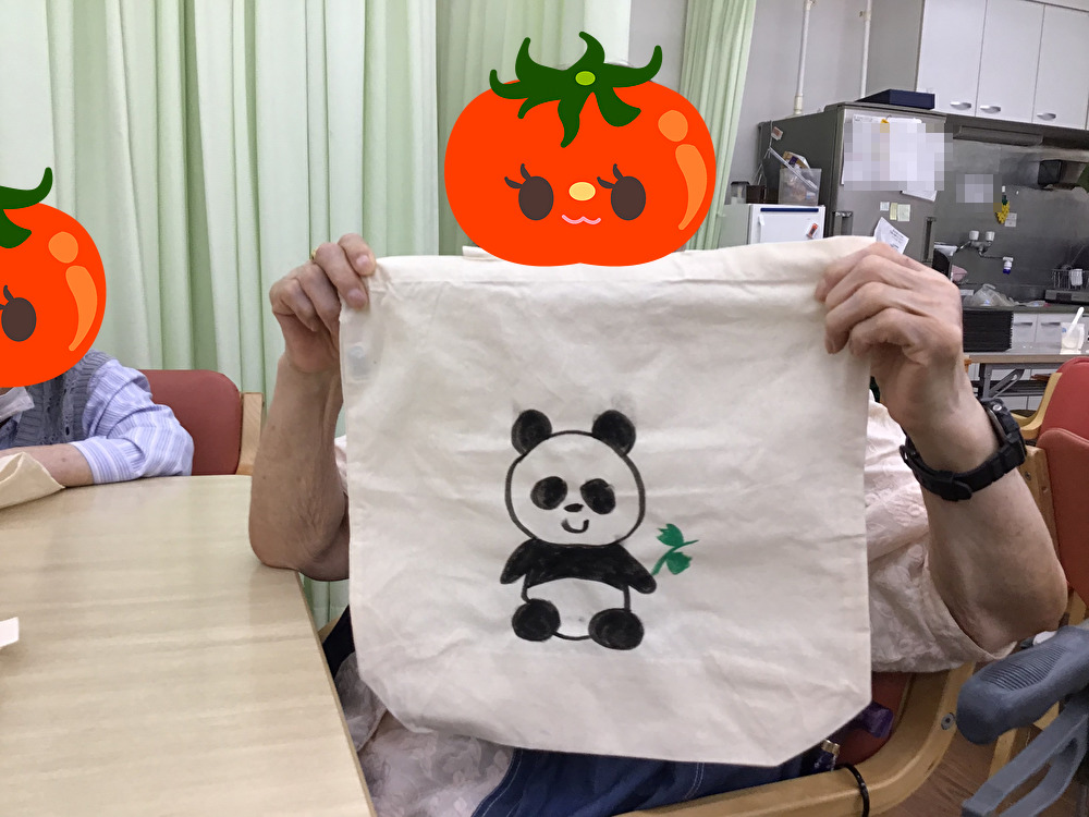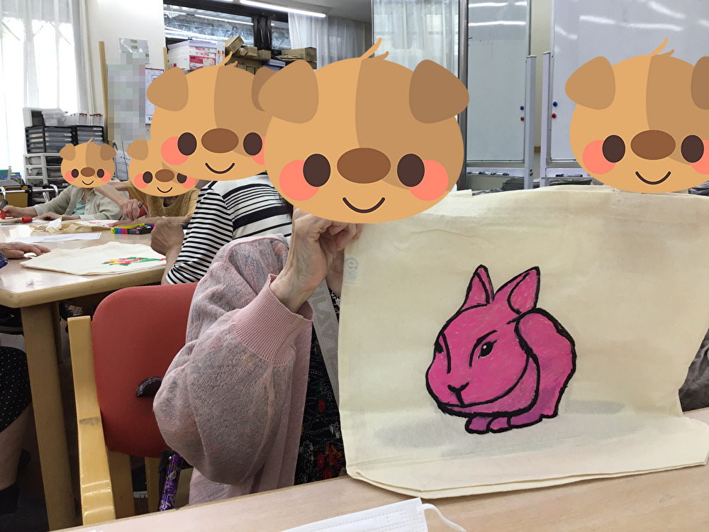 無地のエコバッグにお好きな絵を選び、それを下敷きに写して色を入れて完成!それぞれ個性あふれる色鮮やかなエコバッグが完成しました!