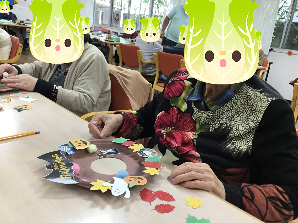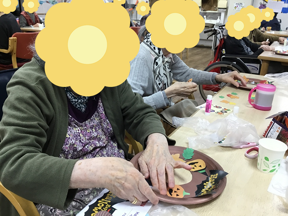 まもなくハロウィンの季節がやってきます(このブログを作成しているのは10/23です)。私たちの施設でも、季節を感じていただけるイベントとして「ハロウィンリース作り」を行いました。