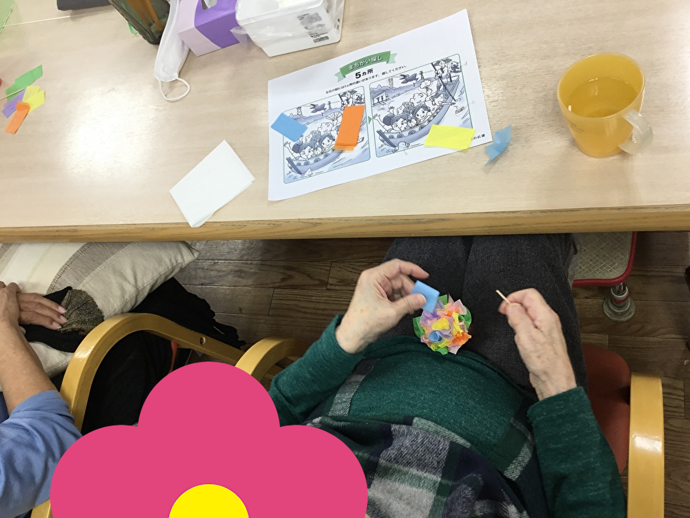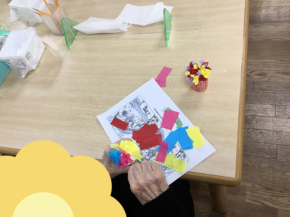 「フラワーカップ作り」のイベントを行いました🌸紙コップに色とりどりの紙を使い、立体的なお花を咲かせていただきました。