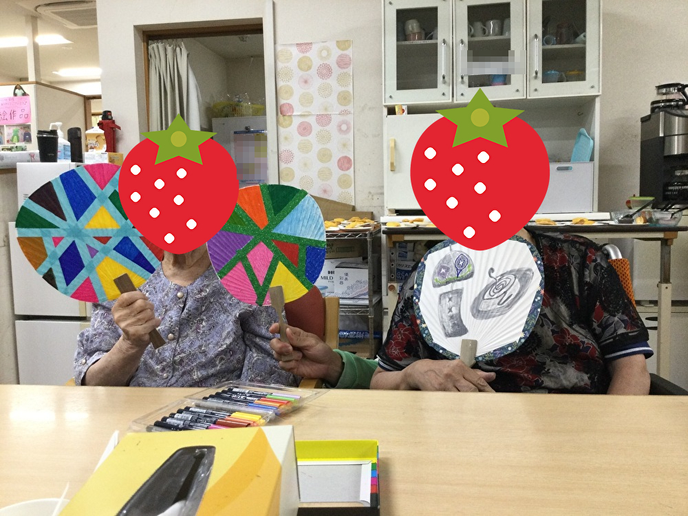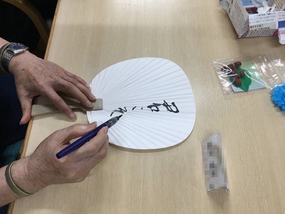 少しでも涼しい気分になっていただこうと思い、うちわ制作をしました