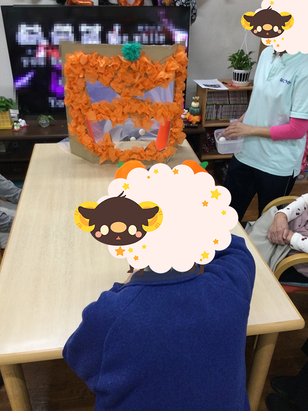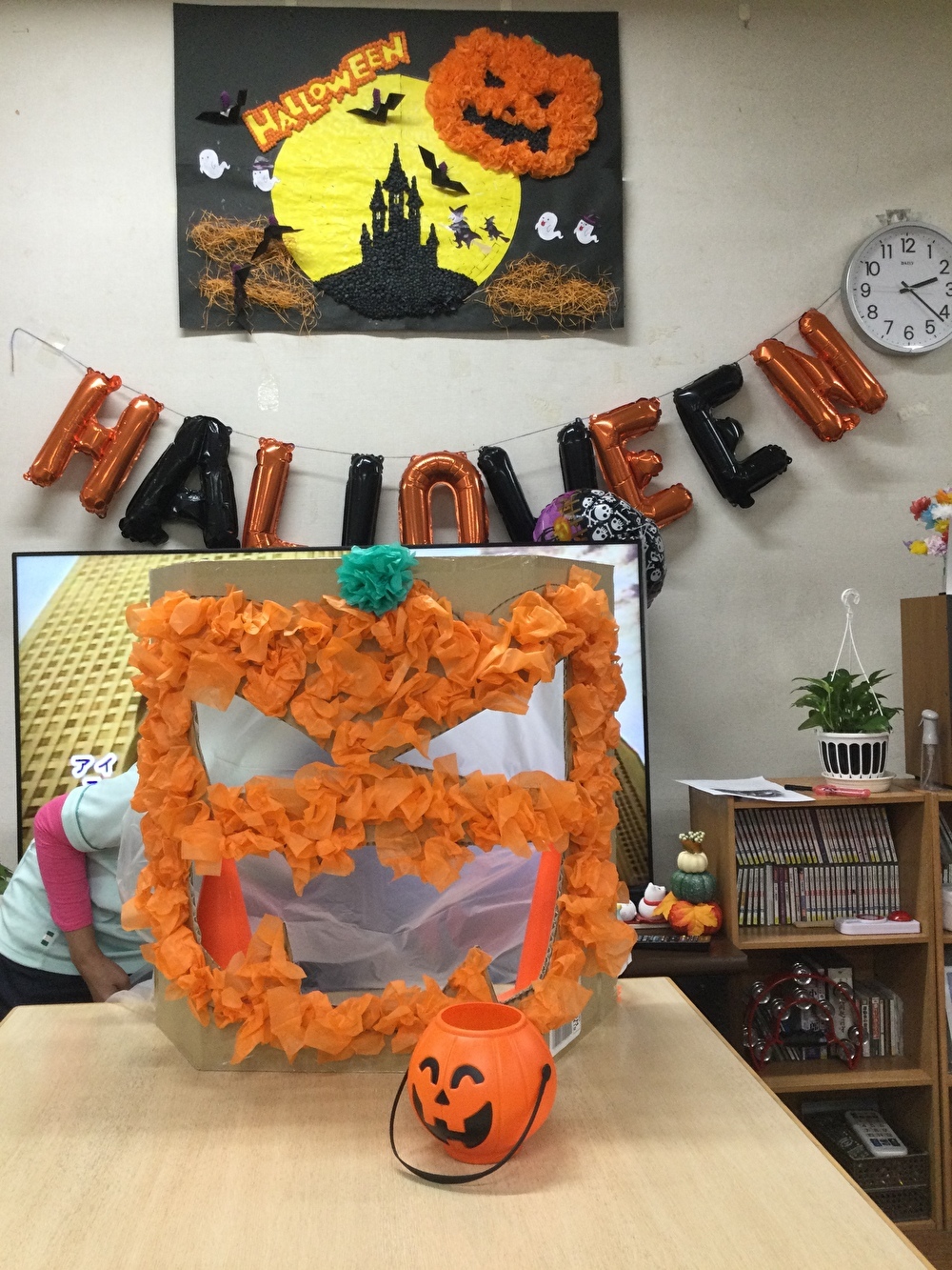 当日の職員による制作と、利用者様の仕上げ制作でしたが、なんとか可愛いカボチャが出来上がりました!