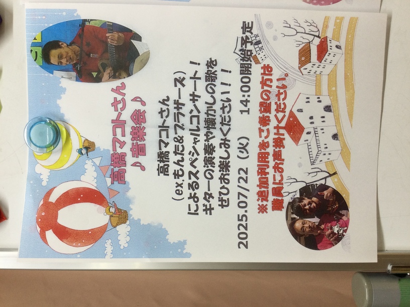 さて今回なごやか杉並では、「高橋マコトさん(もんた&ブラザーズ)によるコンサート」を開く事が出来ました。