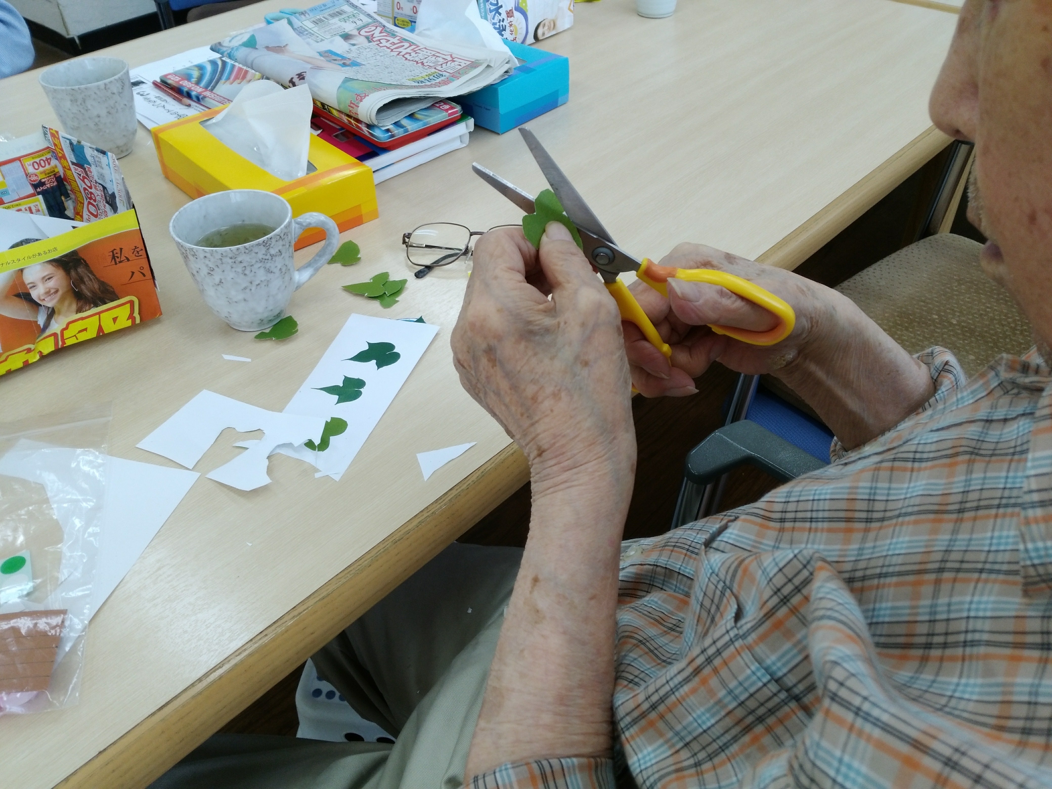 今日の作業レクは、毎月恒例のマイカレンダーつくり。皆さん、静かにハサミやのりを用いて作業に集中されています。ご本人、ご家族様に好評(かつびっくり)いただいているカレンダーつくり。さて、出来上がりを楽しみにしてください。