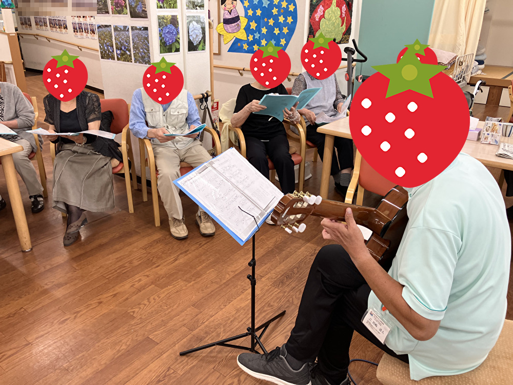 今日は「ギターと歌おう」 ・・・と題して、ギター演奏に合わせてみんなで歌を歌いました( ^^) _♪