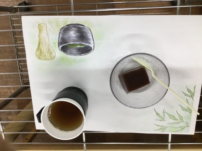 おやつにはようかんを普段と違うランチョンマットに乗せてご提供いたしました。