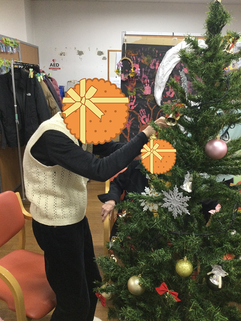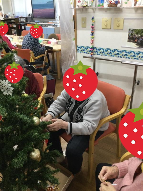 みるみるうちに華やかになったツリーに、利用者様も「わー!きれい〜!」と。