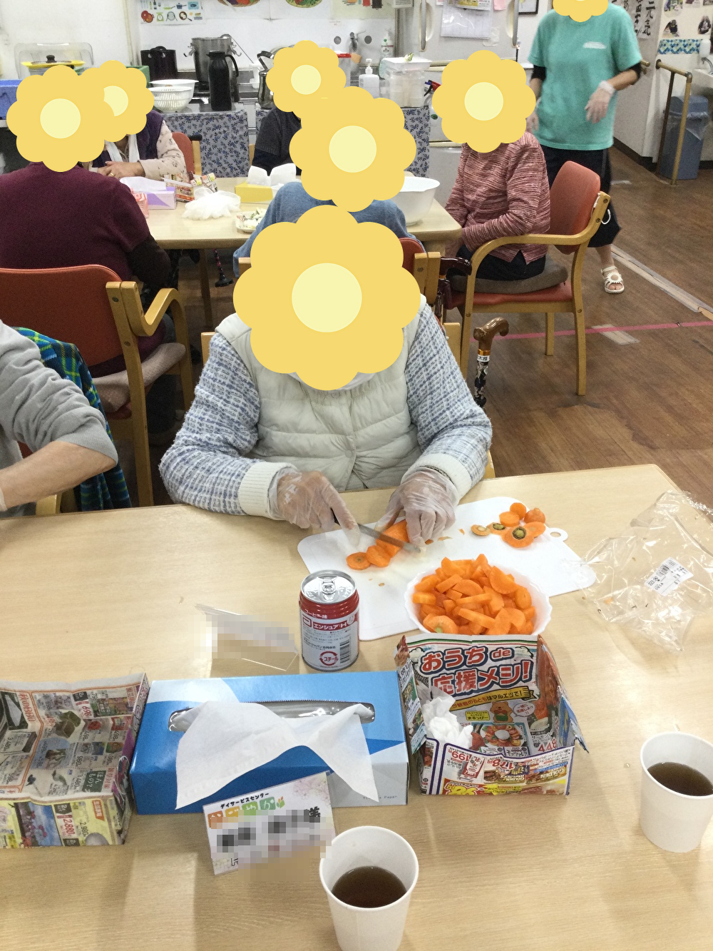 利用者様には、野菜を切る・剥く作業をお願いしました。