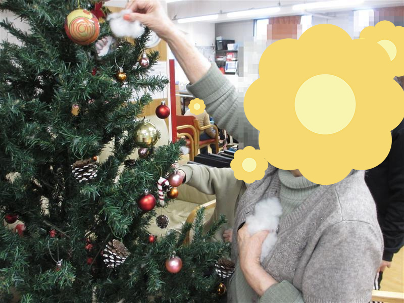 今年も残すところあと半月となりましたが、楽しんで過ごしていただけるようイベントを企画しております!まずはご利用者様と一緒にクリスマスツリーの飾りつけを行いました。
