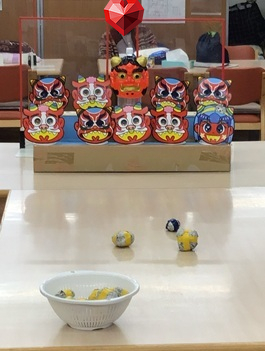 梅の花がちらほら咲き始める中、「オニは〜外〜!」