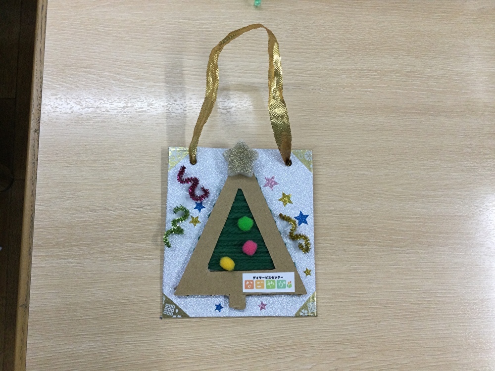 11/28(金)にクリスマスツリーの壁掛け飾りを作りました。毛糸を使用しながら利用者様好みの素敵な作品が出来ました。