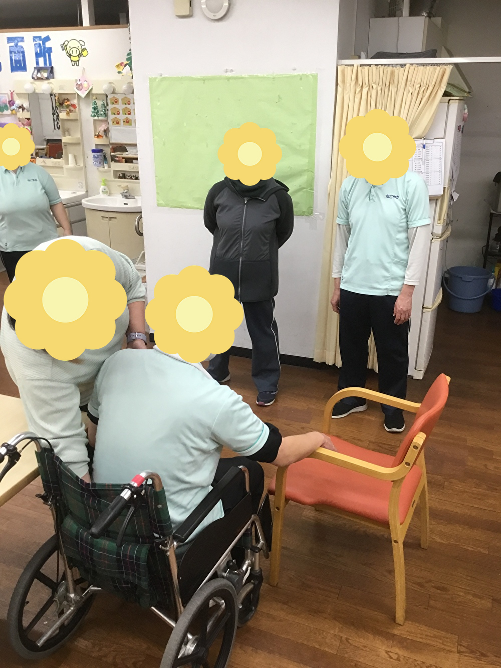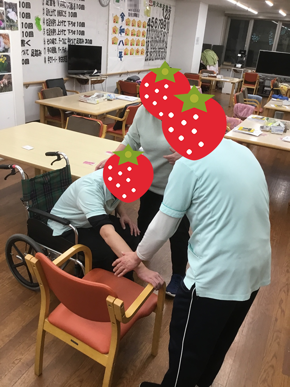 なごやか亀有では今月、機能訓練士の指導のもと、介護技術の研修会を行いました。