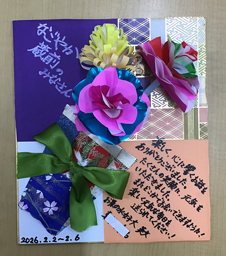 2/2〜2/6の5日間、介護体験学習に来ていただいた学生さんから、心のこもったプレゼントを頂きました。