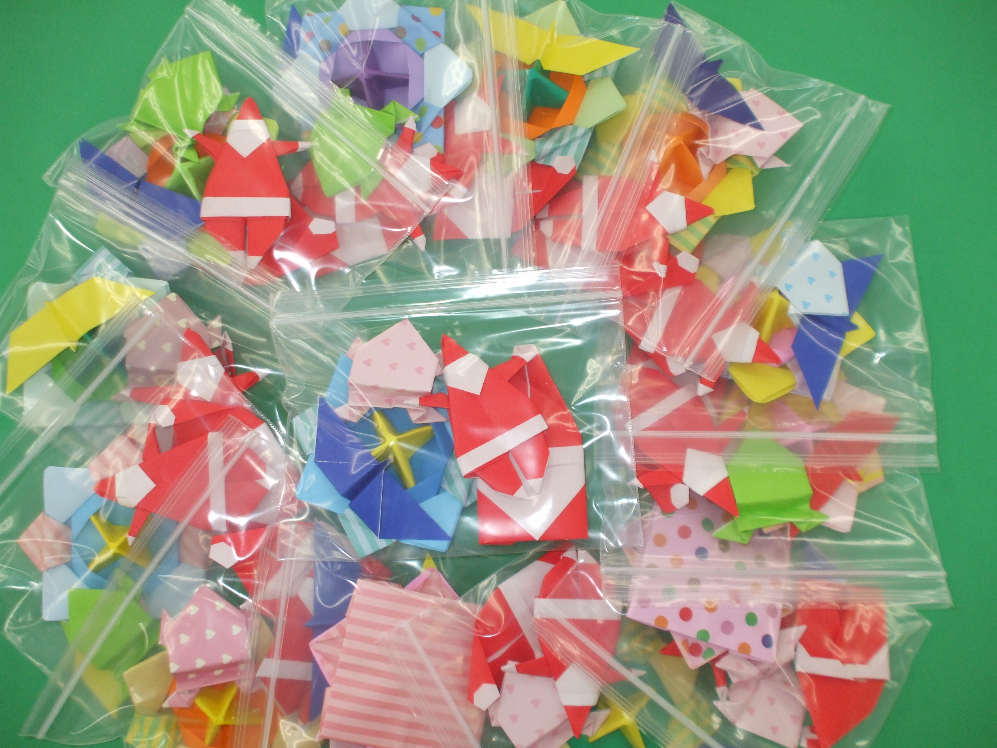 今月も近隣保育園の園児さん達が、クリスマス前に訪れる予定です。毎回園児さん達には、お礼として手作りメダルをお持ち帰り頂いておりますが、更にクリスマスプレゼントとして、利用者の方が「折り紙」を折ってきてくれました。なんと!ジップロックにセットしてご用意頂けました。園児さん一人一人を思いながらセットして頂いたN様に感謝です!!