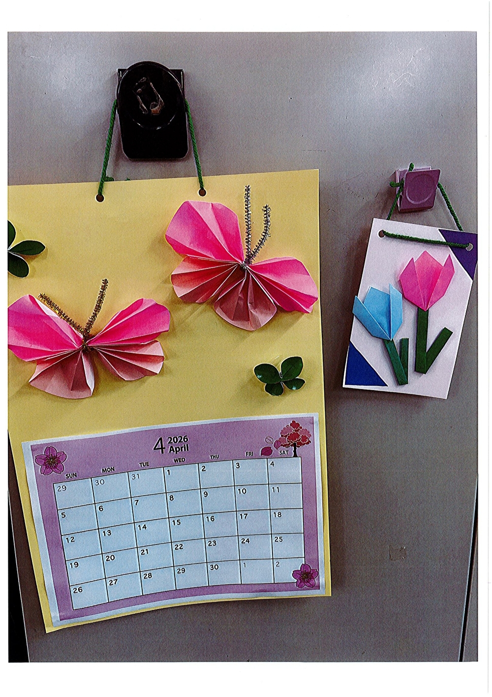 今月は桜の壁紙と、ちょうちょのカレンダー作りを行いました。なごやかは春満開です!!
