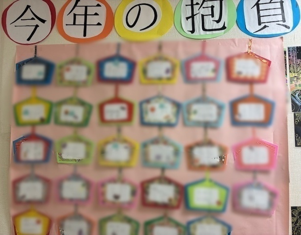 春恒例の「抱負作り」を行いました。壁には皆様が書かれた「祈願成就」の文字や、お一人おひとりの願い事が力強く並んでいます。