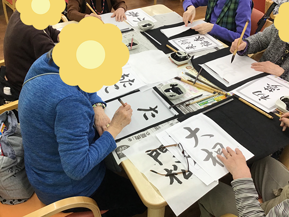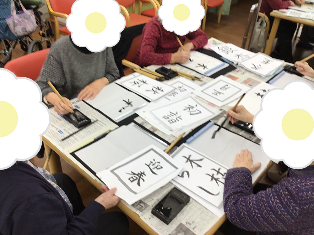 なごやか三軒茶屋では1月だけではなく、季節ごとにお手本を変えて書道を楽しんでいただいております。