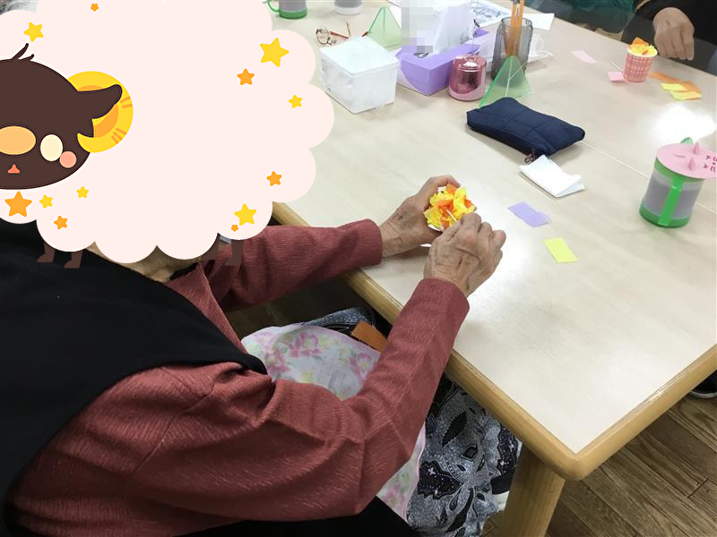 「フラワーカップ作り」のイベントを行いました🌸紙コップに色とりどりの紙を使い、立体的なお花を咲かせていただきました。