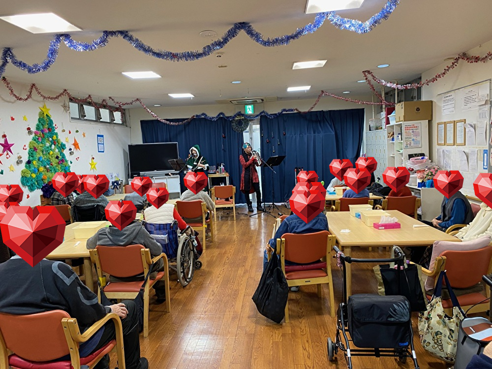 12月25日、再びプリン・アラモードのお二方に来ていただき、クリスマスコンサートを開きました。クリスマスソングを散りばめた、冬のうたのプレゼントです。