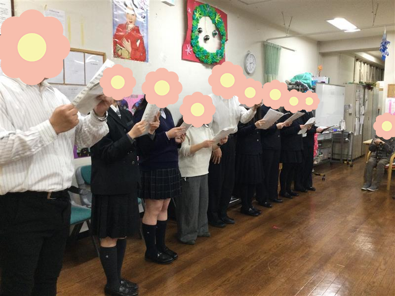24日クリスマスイヴの日に中学校と高校生の皆様が新宿御苑に来てくださいました。クリスマスの歌や楽しいゲームで盛り上げて下さいました。