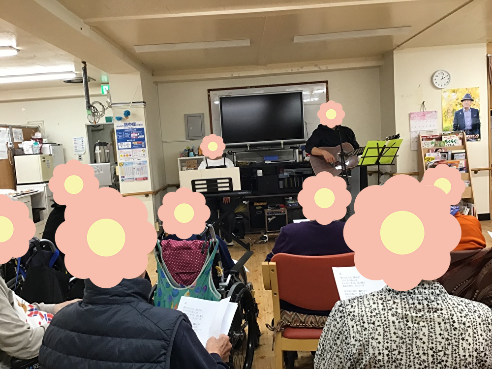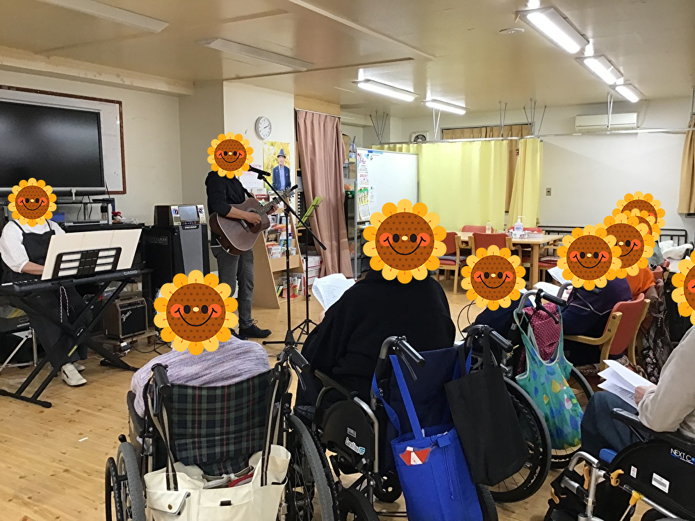 皆さんに馴染みのある歌の数々を演奏し、ご利用者様も元気に歌われていました。