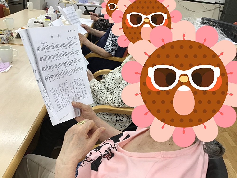 午後はレクリエーションの時間を使い職員のギター演奏に合わせて「虫の声」などご利用者様の高らかな歌声が聞こえてきました。